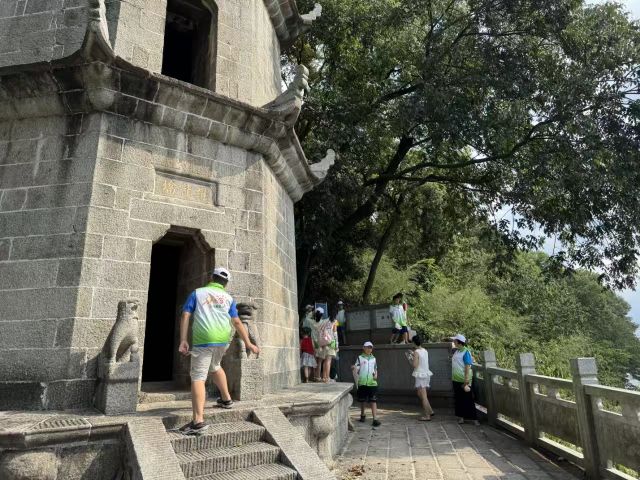 在水环境探秘之后,小卫士们踏入桃江凤凰山森林公园,志愿者们从生态维度讲解百年古树保护意义及森林涵养水源、护鸟等作用,串联 “护山护林 — 护水节水 — 护鸟护生” 生态链;从文化维度讲述屈原与桃江的渊源,介绍钓鱼台传说、耀龙塔历史,让小卫士们真切感受到自然生态与人文历史的交融之美。